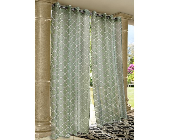 Description Enliven your patio decor with the stylish Wrought Iron Indoor/Outdoor Sheer Curtain Panel from Outdoor Decor. This airy outdoor curtain features an on-trend trellis pattern in a neutral gray hue. Made with UV-resistant and weather-resistant properties, this curtain panel offers a breezy cover to keep the sun at bay or to separate spaces.Dimensions (Overall): 96.0 inches (L) x 54.0 inches (W)Care & Cleaning: Machine washIndoor/Outdoor: OutdoorFeatures: UV Protection, weather-resistantPattern: Printed patternFeatures an on-trend trellis pattern in a neutral gray hueMade with UV-resistant and weather-resistant propertiesAdds a breezy cover to keep the sun at bay or to separate spaces Estimated shipping dimensions: 5.5INCH X 5.0INCH X 5.5INCH DPCI : 068-03-2434 UPC : 069556495333 TCIN : 16858597 Estimated shippimg weight: 0.8POUND