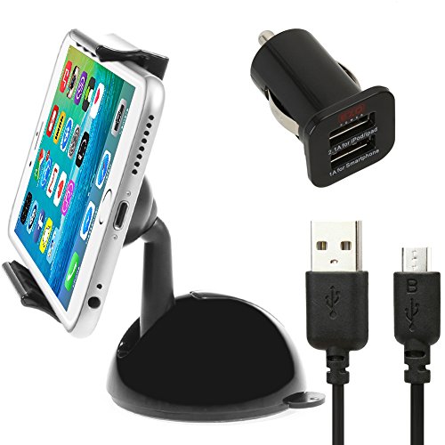 iKross Car GelPad Dashboard Windshield Mount Holder - Black Attach your smartphone, mp3 player, GPS, and other portable device to the windshield and dashboard in your vehicle with the iKross Car GelPad Dashboard Windshield Mount Holder. The adjustable swivel ball-head design allows you to get the perfect viewing angle, so the screen always stays secure directly in front of you Holds your smartphone or portable device in either landscape or portrait modeAdjustable padded holder fits devices between 2.17 and 3.54-inch wide (55-90mm)360 degree swivel ball head joint allows a perfect customized viewSimple one-touch mounting lockWashable and re-usable suction cup EZOPower EZCH15B 2-Port USB Car Charger (1A/2.1A)EZOPower 2-Port USB Car Charger.Input: 12V 1A.Output voltage: 5V.USB Output1: 2.1A (Does not charge Samsung tablet).USB Output2: 1A.Charge 2 devices at the same time.Short circuit protection.LED charging indication.EZOPower USB 2.0 A to Micro-USB B High Speed Sync & Charge Cable M/M - Black (6 Feet)USB data sync charger cable.Connectors: USB Type A Male to Type B Micro-USB Male.Connect phone, camera, ebook and more with your PC/Laptop by USB port.USB is supported on Windows 98/2000/ME/XP, not supported on Windows 95/98 1st Edition or Windows NT.Transfer rates up to 480Mbps depending on USB version.Foil and braid shielding reduces EMI/RFI interference thus ensuring high-speed, error-free data transfer.