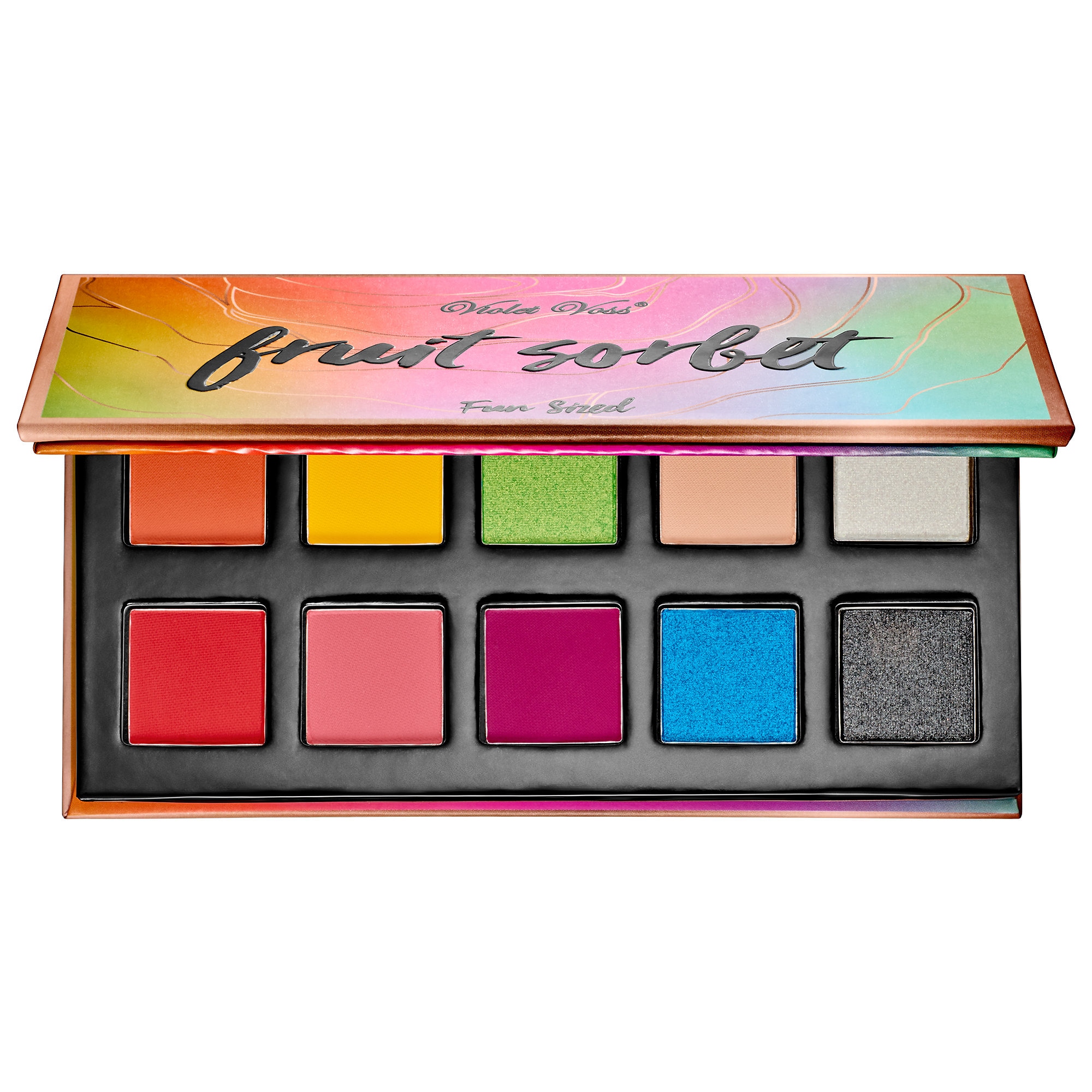 What it is: A 10-pan, fun-size eyeshadow palette in a beautiful, seriously-pigmented assortment of colors.What it does: Each fun-size palette complements the others (each palette sold separately) with a variety of 10 richly-pigmented mattes, creamy foils, magical metallics, and satin sheens. These compact palettes are the perfect size for travel, or to pop into your handbag. Their carefully-curated colors let you create day-to-night looks with one palette—or use them all for a fun variety of looks and finishes.This set contains:- 10 x 0.04 oz/ 1.2 g EyeshadowsWhat it is formulated WITHOUT:- Parabens- Sulfates- Phthalates Ingredients Mica, Talc, Kaolin Clay, Magnesium Stearate, Phenyl Trimethicone, Tridecyl Trime-llitate, Phenoxyethanol. May Contain (+/-): Mica, Titanium Dioxide (Ci 77891), Iron Oxides, Chromium Hydroxide Green (Ci 77288), Chromium-Oxide Greens (Ci 77288), Manganese, Violet (Ci 77742), Ultramarines (Ci 77007), Ferric Ferrocyanide (Ci 77510), FD&C Red 40 Al Lake (Ci 16035), FD&C Yellow 5 Al Lake (Ci 19140), FD&C Blue 1 Al Lake (Ci 42090).