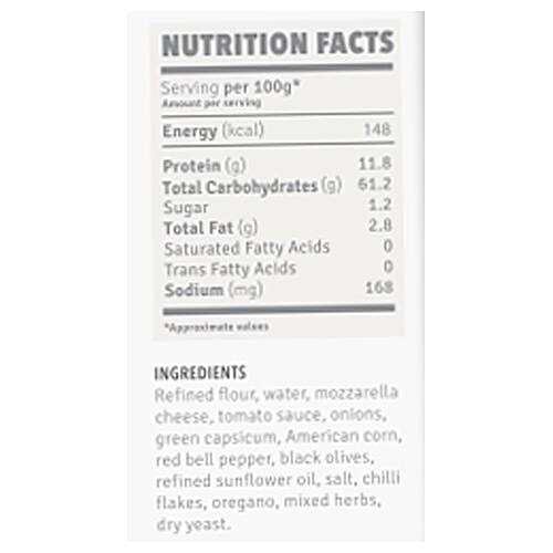 About the Product @import url("https://www.desercart.com/static/froala_style_v2.min.css"); It is a capsicum corn pizza loaded on a soft yet crispy pizza base, with olives, chilli flakes and mozzarella cheese. Yumlane Pizza is part of the Italian snack series. Yumlane offers on-the-go hot snacking and meal for modern-day busy Indians. It is quick-to-serve, affordable and hygienic to consume.