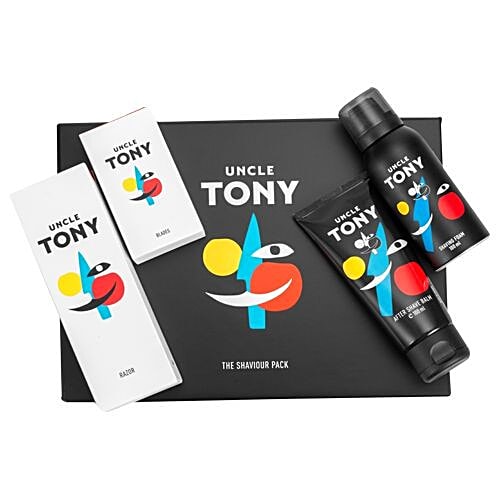 About the Product @import url("https://www.desercart.com/static/froala_style_v2.min.css"); The UncleTony Shaving System has a Razor Handle with a blade, a 5 system 4 blade cartridge pack, an amazing Shaving Foam with a French fragrance and an After Shave Balm from Provence, France with soothing Inca Inchi Oils to calm your skin. It also makes for a perfect gift. How to Use @import url("https://www.desercart.com/static/froala_style_v2.min.css"); As per individuals. Composition @import url("https://www.desercart.com/static/froala_style_v2.min.css"); Shaving Foam - Aqua, Stearic Acid, Triethanolamine, Propane, Butane, Isobutane, Ceteareth-20, Glycerin, Propylene Glycol, Coco-glucoside, Glyceryl Oleate, Sodium Lauryl Sulphate, Parfum, Dmdm Hydantoin, Methylchloroisothiazolinone, Methylisothiazolinone, Allantoin, Menthol, Aloe Barbadensis Leaf Juice, Tocopheryl Acetate.Aftershave Balm - Aqua (Water), Helianthus Annuus (Sunflower) Seed Oil, Persea Gratissima (Avocado) Oil, Potassium Cetyl Phosphate, Oleic/Linoleic/Linolenic Polyglycerides, Plukenetiavolubilisseed Oil, Glycerin, Tocopherol, Cetearyl Alcohol, Parfum (Fragrance), Potassium Sorbate, Carbomer, Sodium Hydroxide, Tetrasodium Glutamate Diacetate, Benzyl Alcohol, Citral, Limonene, Linalool.