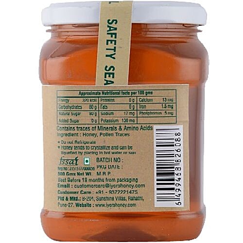 About @import url("https://www.desercart.com/static/froala_style_v2.min.css"); A beekeeper initiative to provide our consumers with 100% pure honey through our network of beekeepers, tribals & farmers, who in turn are encouraging and increase in pollination across our country in fields, forests and farms. The contents of this bottle has 500 grams of pure Multifloral Honey. Multifloral Honey is obtained when the dominant nectar source is from multiple different flowers.No need to refrigerate. How to Use @import url("https://www.desercart.com/static/froala_style_v2.min.css"); A spoonful of honey taken with warm water and lemon in the morning is known to aid weight management. It aids in digestion. It is a natural remedy for cough and throat irritation. Its anti-bacterial qualities are particularly useful for the skin, and, when used with the other ingredients, honey can also be moisturizing and nourishing.