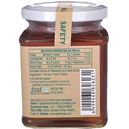 About @import url("https://www.desercart.com/static/froala_style_v2.min.css"); A beekeeper initiative to provide our consumers with 100% pure honey through our network of beekeepers, tribals & farmers, who in turn are encouraging and increase in pollination across our country in fields, forests and farms. The contents of this bottle has 350 grams of pure Multifloral Honey. Multifloral Honey is obtained when the dominant nectar source is from multiple different flowers. No need to refrigerate. How to Use @import url("https://www.desercart.com/static/froala_style_v2.min.css"); A spoonful of honey taken with warm water and lemon in the morning is known to aid weight management. It aids in digestion. It is a natural remedy for cough and throat irritation. Its anti-bacterial qualities are particularly useful for the skin, and, when used with the other ingredients, honey can also be moisturizing and nourishing.
