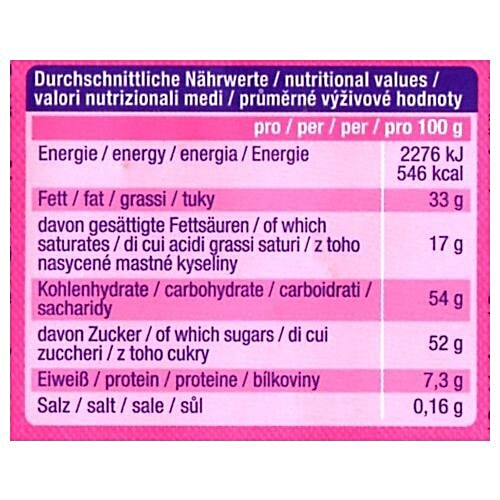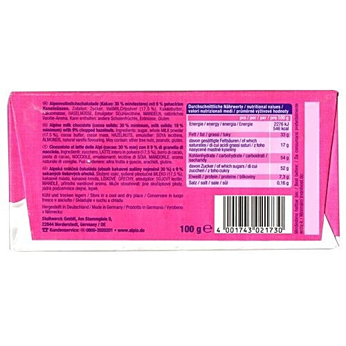 About @import url("https://www.desercart.com/static/froala_style_v2.min.css"); Fine, alpine milk chocolate combined with crunchy hazelnut pieces is a perfect fit for your after-meal sweet. Ingredients @import url("https://www.desercart.com/static/froala_style_v2.min.css"); Alpine milk chocolate (cocoa solids:30% minimum, milk solids:18% minimum) with 9% chopped hazelnuts. Ingredients: sugar, whole MILK powder(17.5%), cocoa butter, cocoa mass, hazelnuts, emulsifier: soya lecithins, ALMONDS, natural vanilla flavouring. It may contain other tree nuts, peanuts, and gluten.
