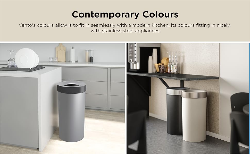 The UmbraVento Kitchen Trash Can offers a large 16.5-gallon capacity with a modern open-top design that eliminates the need for pedals or lids. Crafted from durable polypropylene in a black and nickel finish, it complements contemporary kitchens while being easy to clean. Designed by Umbra’s international team, it combines original style with practical durability for a clutter-free, stylish kitchen experience.