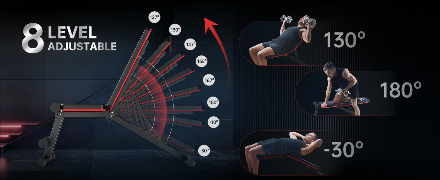 The PASYOU Adjustable Weight Bench is a foldable, multi-position strength training bench designed for home gyms. Featuring 8 adjustable angles from decline to incline, dual foot support for enhanced stability, and premium sports foam padding, it supports up to 550 lbs on a durable alloy steel frame. Its compact foldable design makes it ideal for small spaces, enabling full-body workouts including bench presses, sit-ups, and dumbbell exercises with professional-grade reliability.