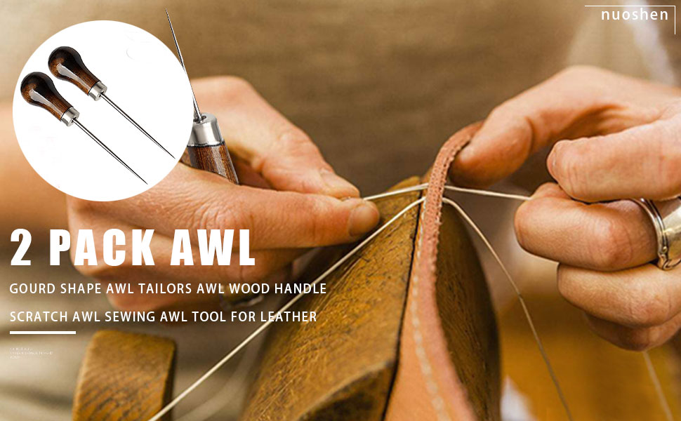 The nuoshen 4 Pack Awl features a gourd shape design with a durable wood handle and metal tip, measuring 11.5cm in length. Ideal for sewing, DIY projects, and various materials, this tool is lightweight yet robust, making it a must-have for any crafting enthusiast.
