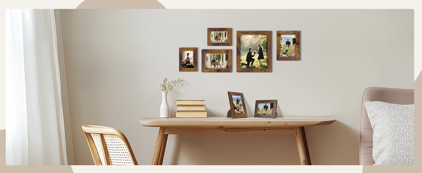 PETAFLOP Gallery Wall Frame Set 7 Pack Distressed Picture Frame Set, One 8x10 Picture Frames, Two 7x5 Photo Frames, Four 4x6 Picture Frames