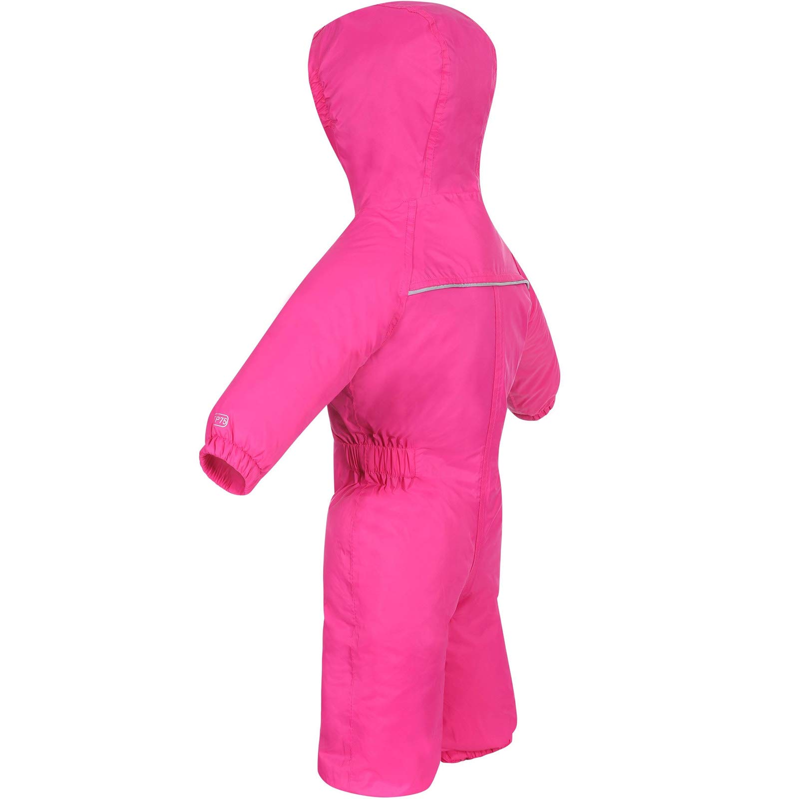 The Trespass Kids' Waterproof Drip Drop Outdoor Rain Suit is a lightweight, fully waterproof and padded jacket designed for infants aged 6-12 months. Featuring a durable nylon shell with 100% polyamide PU coating, elasticated cuffs, ankles, and side waist for warmth retention and comfort, plus a full-length front zip and grown-on hood, this suit is perfect for keeping toddlers dry and cozy during autumn and winter outdoor activities like camping and hiking.