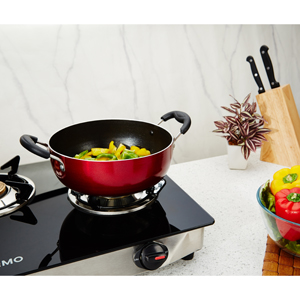 The Amazon Brand Solimo Non-Stick Kadhai (22 cm) features a premium 3-layer 2-way non-stick coating with high temperature resistance, compatible with induction and gas stoves. Crafted from sturdy 3 mm thick aluminium and weighing just 760 grams, it offers durability and ease of use. Equipped with cool-touch bakelite handles and dishwasher safe, this 2.5-litre capacity wok is designed for effortless cooking and cleaning, ideal for stir-fries, sautéing, and shallow frying.