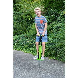 The Flybar Master Pogo Stick is a premium, ready-to-use outdoor exercise toy designed for kids ages 9 and up, supporting weights from 80 to 160 lbs. Featuring a foam-wrapped metal frame, non-slip foot pegs, and a fully enclosed spring for safety and stability, it promotes active play and fitness while delivering the trusted quality of Flybar, the original pogo stick brand since 1918.