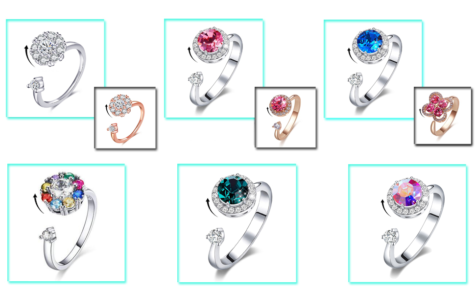 Bling Toman Spin Ring Womens Fidget Ring Adjustable Open Ring | Desertcart Vanuatu