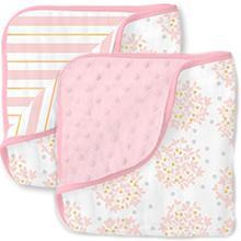 SwaddleDesigns Cotton Muslin Swaddle Blankets are a set of four premium, breathable 46x46 inch cotton muslin blankets featuring stylish shimmer prints. Pre-washed for softness and equipped with an easy-to-follow swaddle guide, these versatile blankets are perfect for swaddling, sunshield, tummy time, and privacy. A must-have for modern parents and a standout baby shower gift.