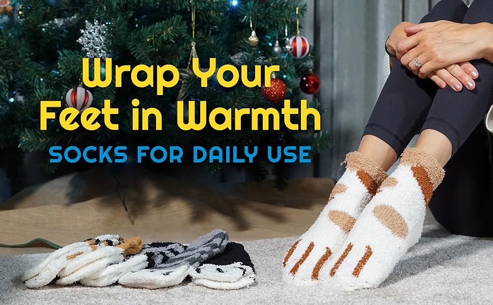 Sunny Socks6 Pairs Cute Cat Paw Socks for Women – Fluffy Fuzzy Animal Print Bed Socks for All Ages – Warm & Cosy Novelty Gift for Cat Lovers – Soft Winter Fluffy Socks for Girls & Ladies