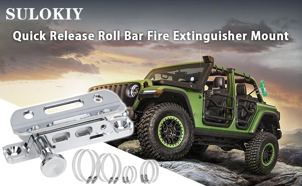 Sulokiy Chrome Quick Release Fire Extinguisher Mount Roll Bar Extinguisher Mount Fit For Jeep Wrangler UTV Polaris RZR Ranger Can-Am Maverick ATV