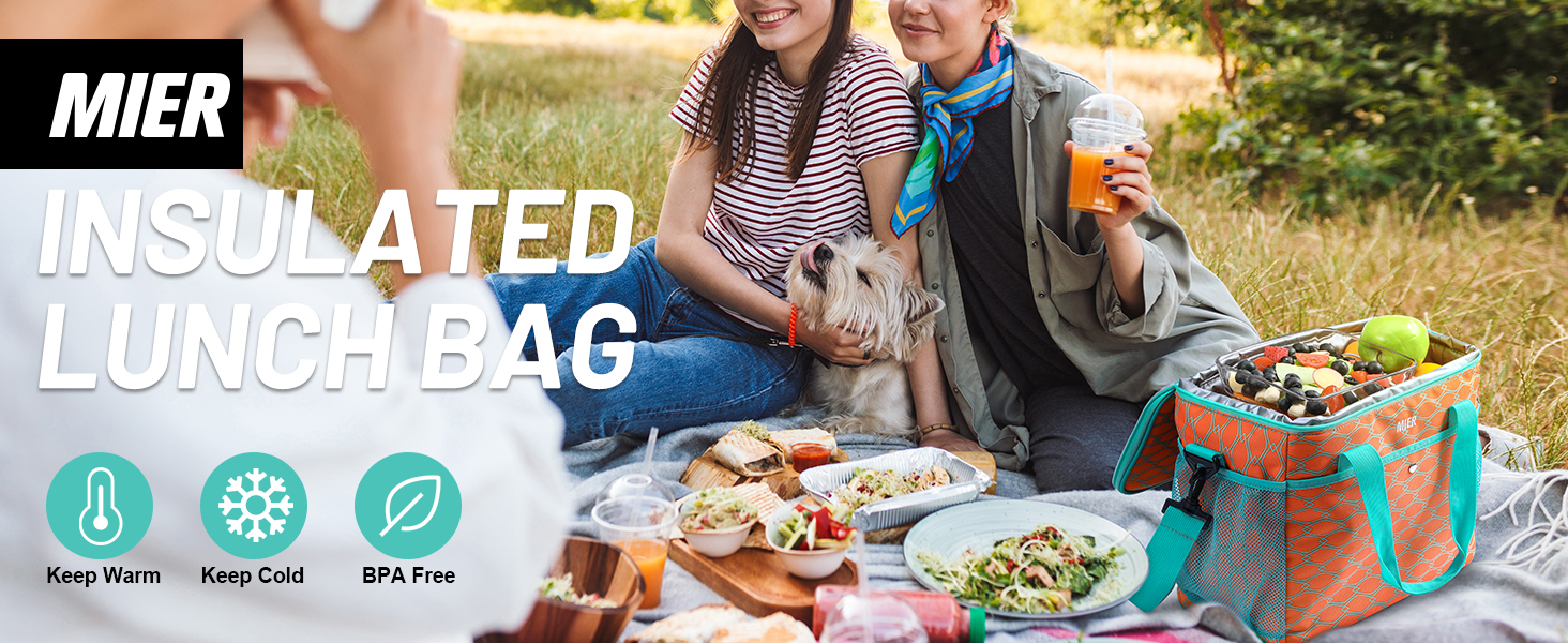 MIER 18L Large Soft Cooler Insulated Picnic Bag for Grocery, Camping, Car, Bright Orange Color