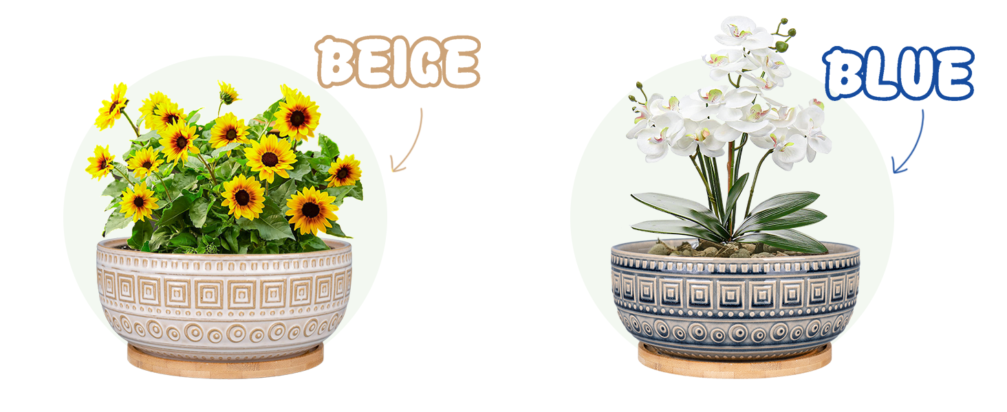 G EPGardening 20.5CM Ceramic Succulent Planter Pots Round Shallow Bonsai Planter Pot for Indoor Plants with Drainage and Bamboo Saucer White
