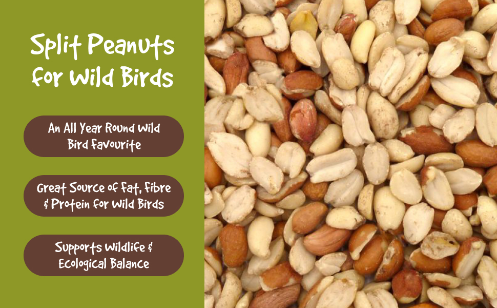 Buzzby's Split Peanuts for Wild Birds is a 12.55kg bulk bag of high-energy, high-protein bird feed, rich in fats and fiber. Specially split to prevent choking, it’s ideal for all bird sizes and feeding styles—hanging feeders, bird tables, or ground feeding. Perfect for year-round use, it attracts a wide variety of birds, enhancing your backyard birdwatching experience.