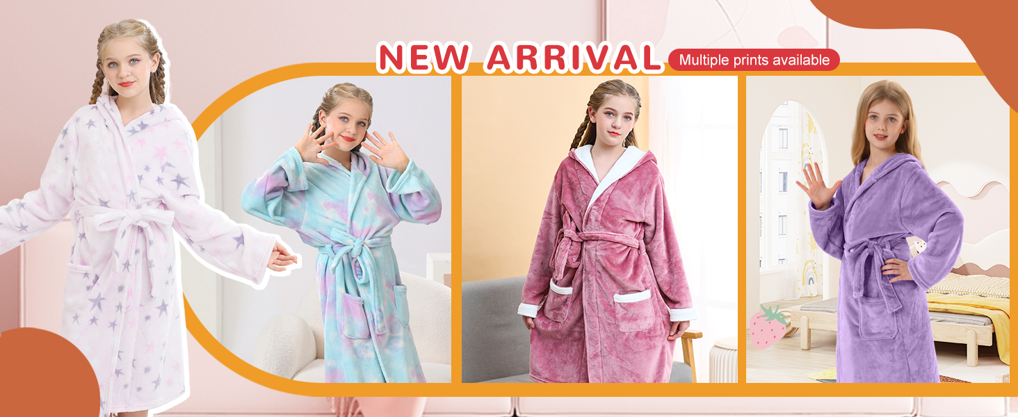 V.&GRINGirls Fleece Robe, Plush Hooded Soft Fuzzy Warm Fluffy Bathrobe for Kids 5-14 YearsOEKO-TEX STANDARD 100