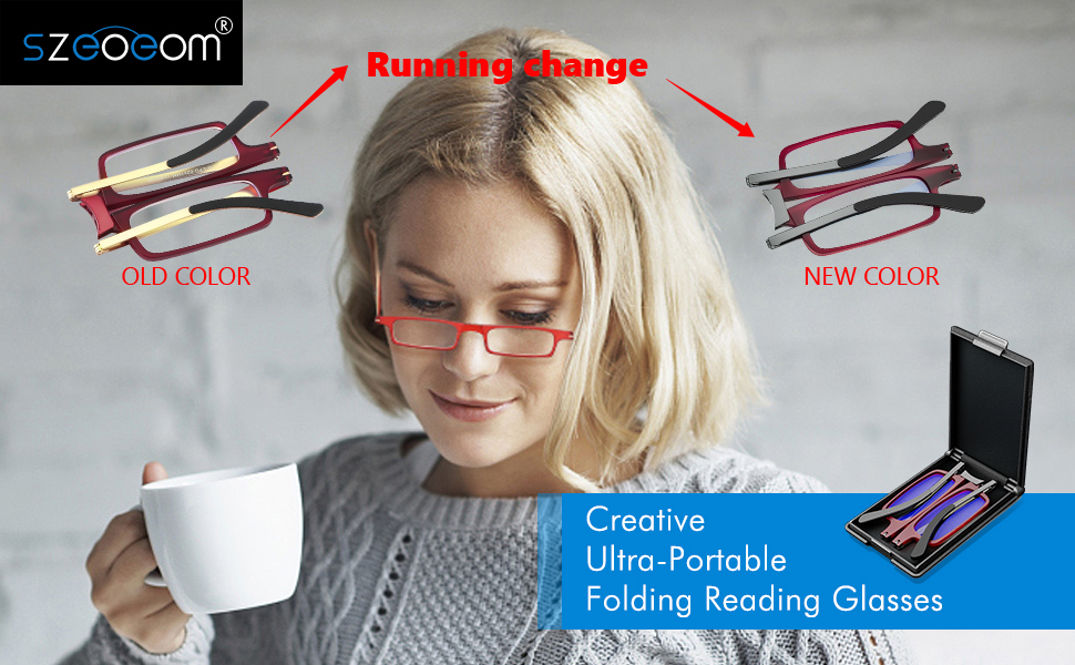 SZEOEOMUltra-Thin Foldable Reading Glasses Ultra-light Bule-light Folding Readers for Men Women Compact Travel Portable Rectangle Eyewear Case