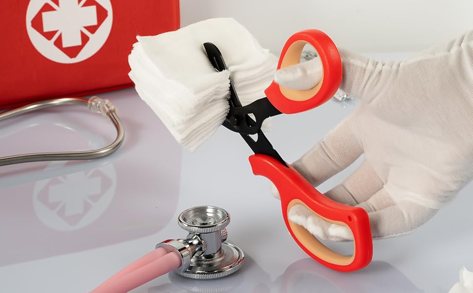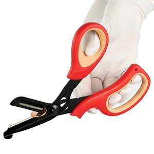 - 【ALL-PURPOS】: Cut anything safely and efficiently with these sharp scissors. Ideal for cutting ribbon, burlap, rope, car seat belts, leather, remove wounded clothes, gauze, tape, bandages etc. Perfect for outdoors, first aid, nurse, doctor, firefighter, gardening, household.