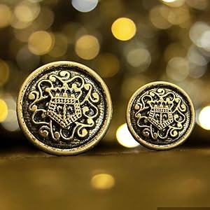 REENA New Shield Bronze 6+6 Designer Buttons feature a durable synthetic resin PVC build with a stylish bronze gold finish. Crafted in India, these shield-shaped buttons are perfect for enhancing coats, blazers, and shirts with a bold yet elegant look, combining lasting quality with versatile fashion appeal.