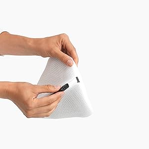 The Brabantia Wash Bag is a high-quality mesh laundry accessory designed to protect delicate garments like bras during washing. Featuring a secure zipper with a protective pull-tab cover, it prevents damage to both clothes and washing machines. Lightweight and compact, it offers durability backed by a 2-year guarantee, making it an essential for anyone serious about garment care.