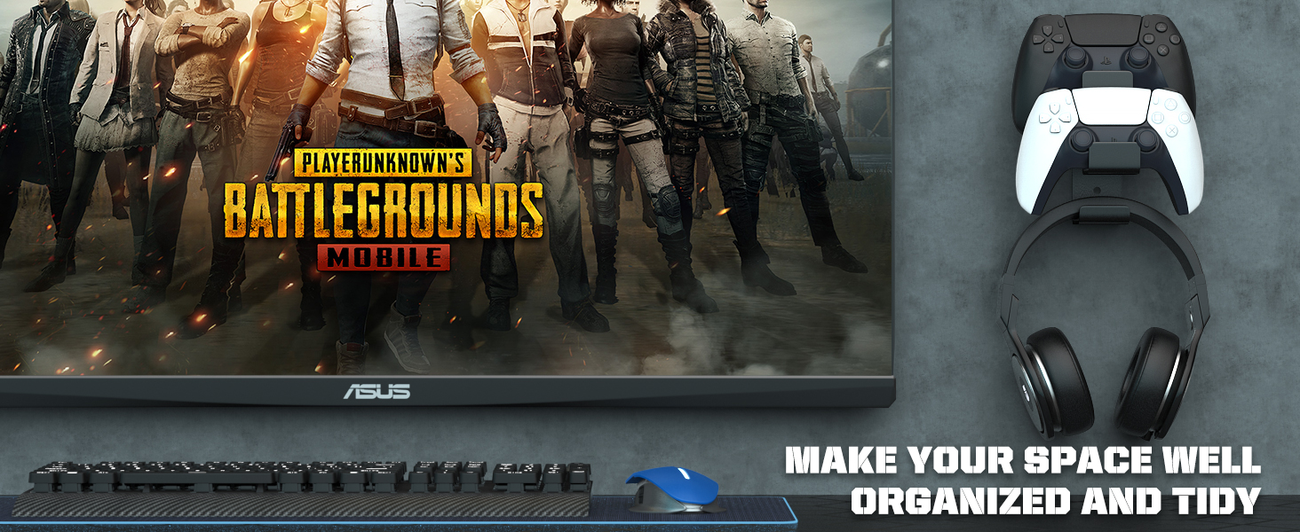 MoKo Controller Holder, Dual Gamepad Controller & Headphone Hanger for Xbox One, Xbox 360, PS3, PS4, PS5, PC, STEAM, Switch丨Wall Mount Stand for All Universal Headsets, Black