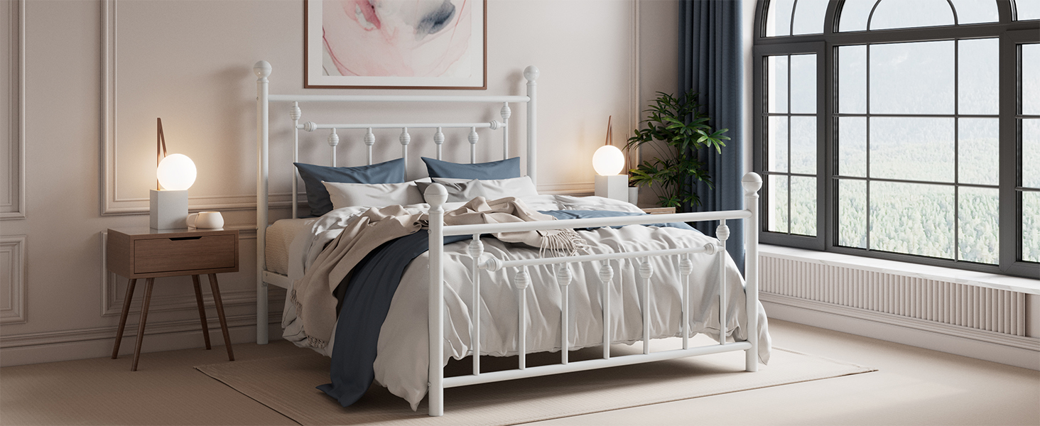I was looking for a metal frame at a descent price and this one came in for the win! It was really easy to setup, just having to screw in some bolts that came with an Allen wrench. It’s very sturdy. Doesn’t move or creak too much. I can stand up on it without feeling nervous of it breaking. And it looks very appealing