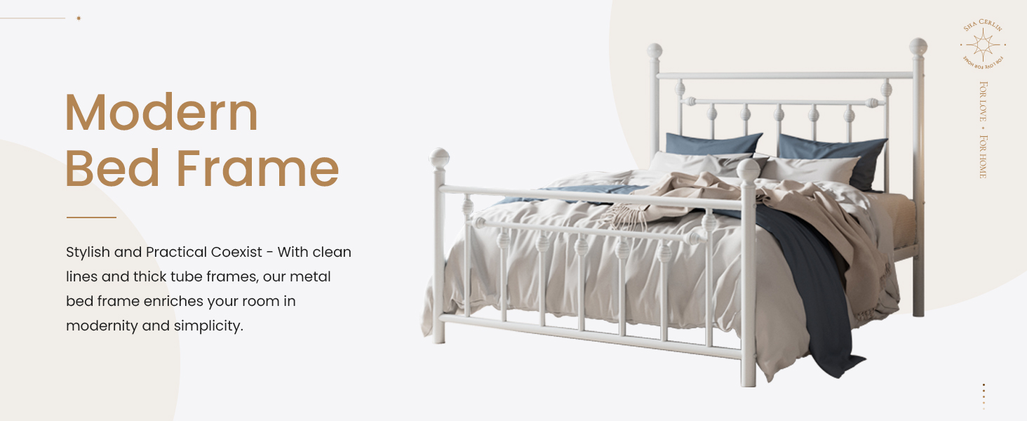 The SHA CERLIN 14'' Queen Size Metal Platform Bed Frame combines durability and elegance, supporting up to 800 lbs while providing ample underbed storage. Its modern design and easy assembly make it a perfect addition to any bedroom.