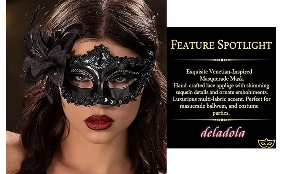 KASTWAVE Women Masquerade Mask 2 Pcs Black Venetian Masks Plastic Flower Party Prom Ball Costume Mardi Gras