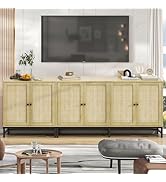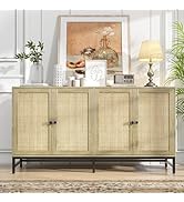 The ZLWJGY Credenza Rattan Buffet Cabinet is a 59-inch wide, mid-century modern inspired storage solution featuring handcrafted natural rattan doors, durable MDF construction, and sturdy metal legs. Designed for multifunctional use across living rooms, kitchens, and dining areas, it offers two spacious shelves behind four shutter-style doors. Easy to assemble with included tools and eco-friendly materials, this cabinet blends style and practicality for the discerning millennial professional.