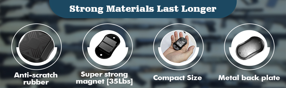 The DINGDOON Gun Magnet Mount features a powerful 35 lbs rated neodymium magnet with a soft rubber coating to securely hold and protect pistols and revolvers. Its compact, low-profile design allows discreet placement in cars, desks, walls, or safes. Installation is versatile and easy with included screws and adhesive tape. Built for durability and backed by a lifetime warranty, this mount is engineered for quick access and reliable firearm concealment.