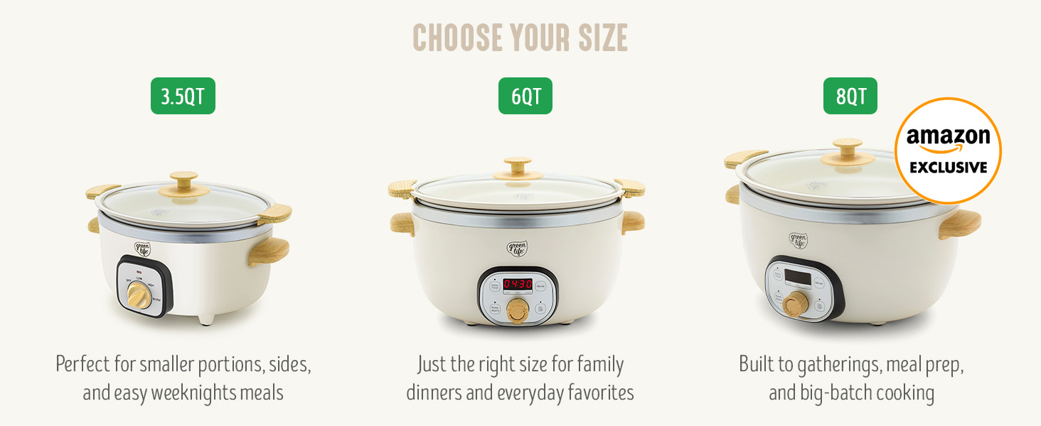 I am reviewing the GreenLife 6 QT Ceramic Non Stick Slow Cooker, PFAS-Free Programmable Removable Pot for Family Meals, Sear on Stovetop Keep Warm, Digital Timer, Dishwasher Safe Glass Lid & Crock, Cream. This is a non-solicited review. I had been looking for months for a slow cooker as a replacement. I tried 3 brand named slow cookers, and returned them all. I saw this one being used by an influencer on TikTok and decided to try it. I love it! It does everything that’s listed. It’s easy to clean, perfect size, and because it’s not a heavy crock insert, it’s easy to lift and store. The cooking thermostat is on the money. The other brands I tried cooked too hot on the low setting. It has a reasonable price point. I purchased the cream color and it’s attractive enough to leave on my counter. I am very happy with this slow cooker!!!