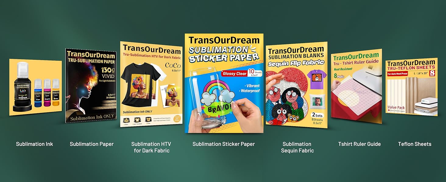TransOurDream CoCo Tru-Sublimation HTV is a cutting-edge solution for sublimating on dark fabrics and 100% cotton. This set includes 30 sheets of vivid sublimation paper and 5 sheets of silky fabric sublimation vinyl, designed for easy application and vibrant results. Ideal for creating custom designs on T-shirts, bags, and more, it offers compatibility with all sublimation papers and inks, making it a versatile choice for DIY enthusiasts.