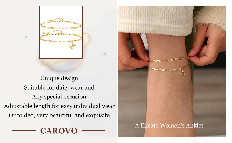 CAROVO Initial Ankle Bracelets for Women 14K Gold Plated Anklets Letter A To Z Waterproof Layered Anklets for Women Summer Jewelry Gifts