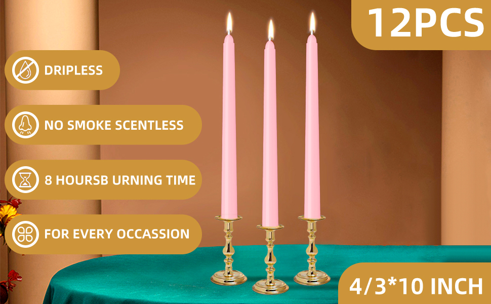 12 Pack Pink Taper Candles Taper Candles 10 Inch Dripless | Desertcart Vanuatu