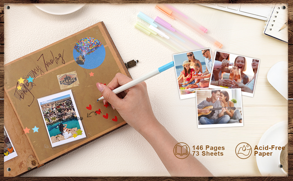 - Travel Scrapbook: Up scrapbook Documenting your adventures,whether as a couple,friends or family,this adventure book gives you the freedom to arrange photos and text to make it a treasured item and a delightful way to celebrate meaningful moments.