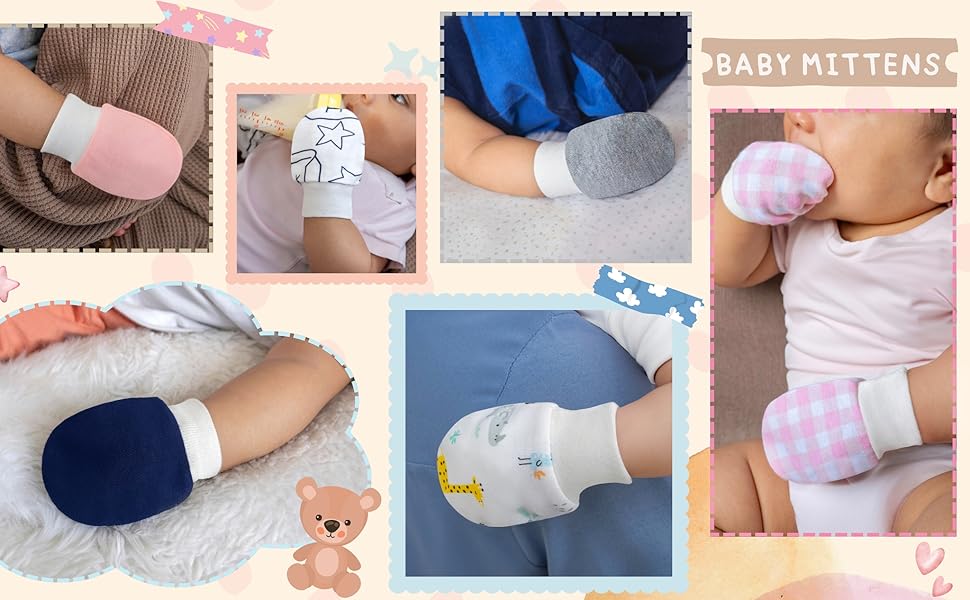 RATIVE Wrist Tab Baby Mittens 0-6,6-12 Months Organic Cotton for Newborn Baby Boys Girls