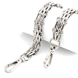 This 23.6" (60cm) wide chunky silver purse strap is made from durable zinc alloy metal, featuring a 17mm width and sturdy 1.8" metal buckles for secure attachment. Weighing 118g, it offers a perfect balance of bold style and practical comfort, ideal as a replacement or DIY accessory for handbags and crossbody bags.