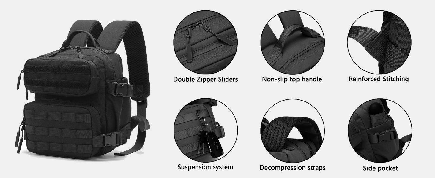 If you're looking for a great small bag with a bunch of compartments then this is an excellent value. This unit also has a bunch of webbing straps so you can attach things to the outside. If you're looking for a very small tactical backpack then this is an excellent durable option.