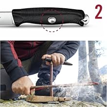 Amazonでの購入ではありませんm(_ _)m老婆心ながら『ベンチャーPro』について気になる点がありましたので・・・1)個別問題かも弓引き(弓錐方式)で火起こしする際のピボットが真っ平らでした。このままではまったく機能しそうもありません。2)付属フェロセリウムロッド細く火花の飛びも悪いです。トップブランドのライトマイファイヤーに比べるまでもなく、そこらのおまけレベルかと感じました。ストライカーを変えても火花の飛びは変わりませんでしたので、ロッドの材質の違いだろうと感じました。初めての方や力の弱い方が火付けをしようと思っても難しいです。3)ナイフ本体(良い品です)ビクトリノクスでは珍しく鋼材も明示されています。実際はほんの僅かにハマグリ刃になっていて箱出しの切れ味も見事でした。1)、2)のようなオマケ機能を本気で使おうとする方は良く検討された方が無難に感じます。安心機能として使い勝手の良いシースナイフとしてならお薦めできますが、現実的には『ベンチャーPro』でなく『ベンチャー』単体が宜しいような気がしています。*Amazonさま購入していない商品についてレビュー欄に書き込みをしてしまっております。問題があれば削除していただきますようお願いいたします。