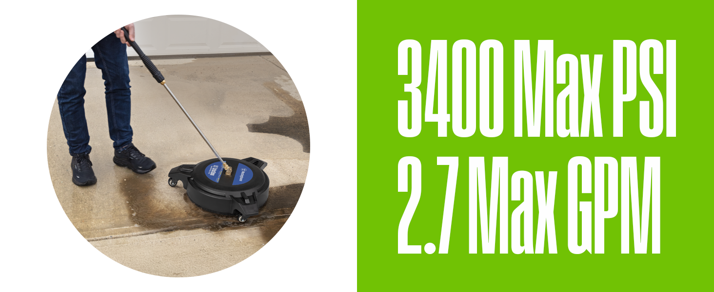 The Westinghouse Universal 16.5" Pressure Washer Surface Cleaner Attachment offers up to 3400 PSI of cleaning power with a broad 16.5-inch path, compatible with most gas and electric pressure washers via a 1/4" quick-connect. Lightweight and easy to use, it’s designed for fast, professional-level cleaning of decks, patios, driveways, and walls, backed by a 180-day warranty from a century-old trusted brand.