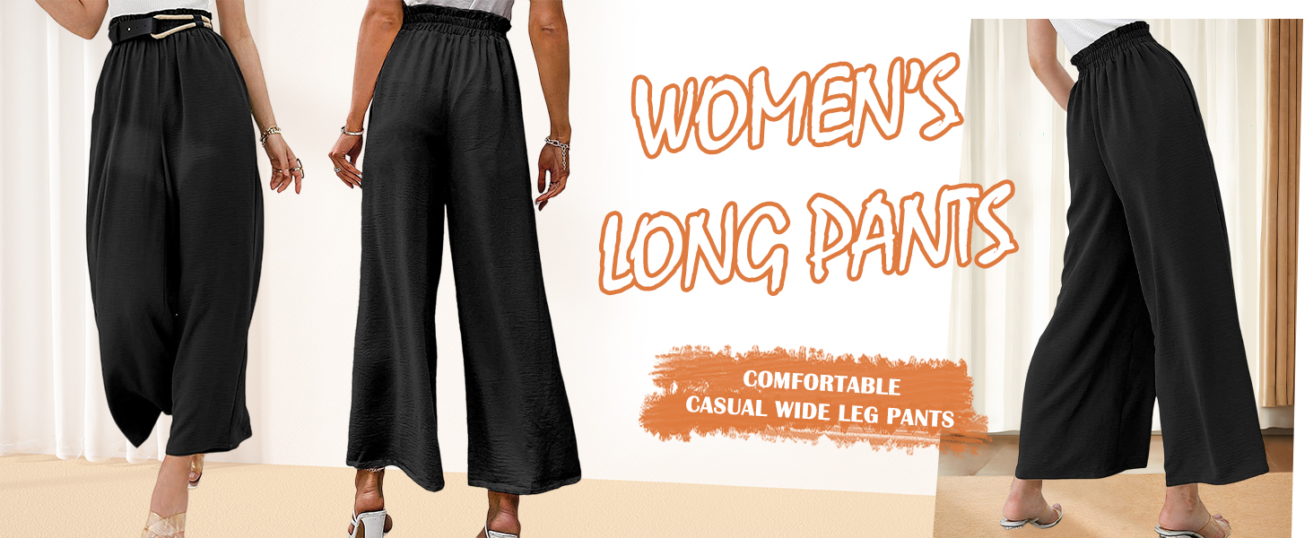 Pasgreson Women's Casual Wide Leg Pants Flowy Ruffle Elastic Drawstring Waist Beach Palazzo Loose Pants with Pockets